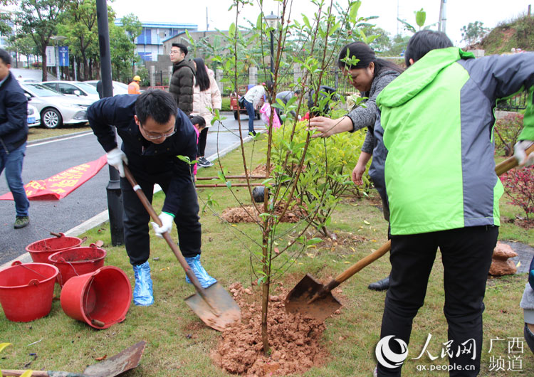 人民網(wǎng)南寧3月11日電 陽春三月,萬物復(fù)蘇,生機勃發(fā)。3月9日,細雨紛飛,春寒料峭,但是南寧經(jīng)開區(qū)的綠港·國際中心卻人潮涌動,愛意濃濃。原來,南寧綠港集團正在舉行“情暖童心·攜手植綠”學(xué)雷鋒志愿服務(wù)月活動,200多名職工和家屬一起參加了當天的愛心義賣、愛心捐贈和義務(wù)植樹活動。